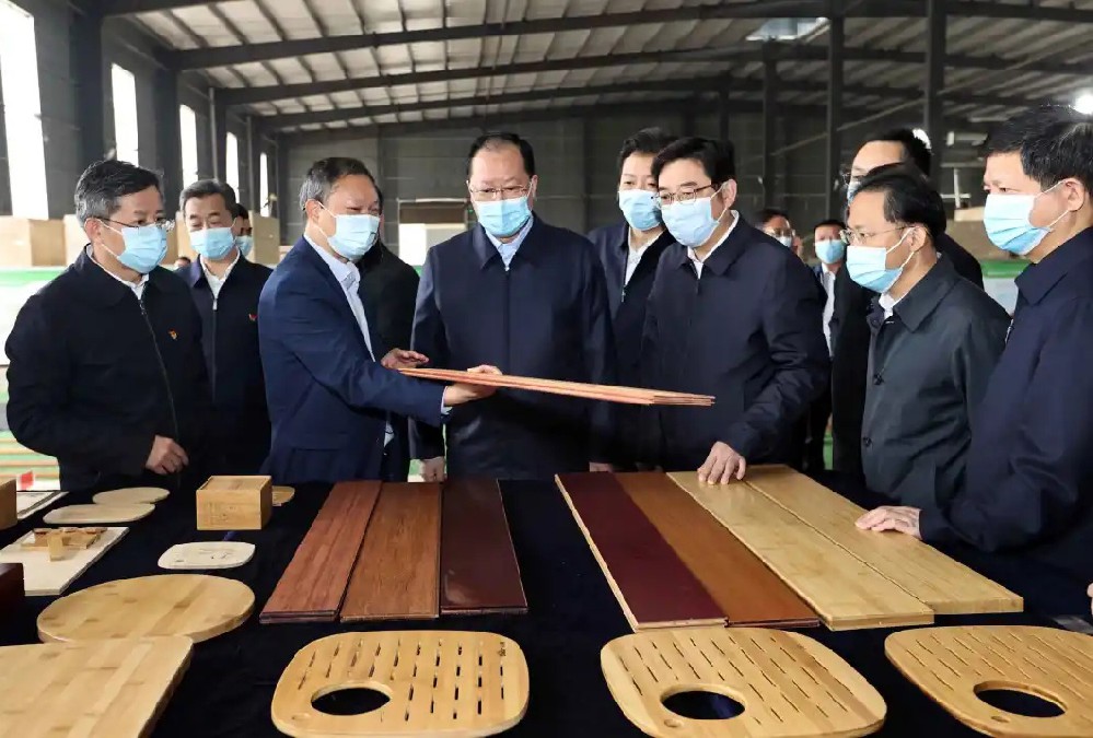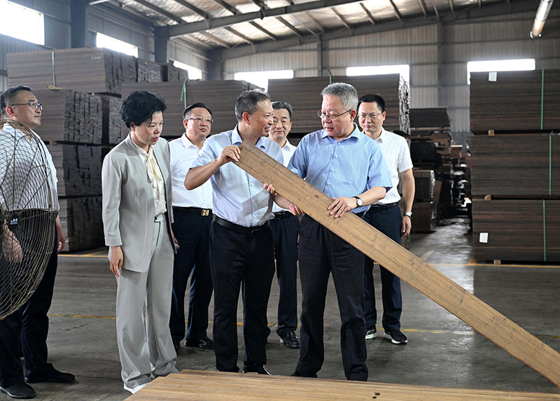 2025年6月16日,省政協(xié)副主席虢正貴來湖南桃花江竹材科技股份有限公司調研生態(tài)資源轉化與特色產業(yè)融合發(fā)展。公司董事長、省人大代表薛志成陪同并介紹情況。虢正貴充分肯定了桃花江竹材在竹資源利用及竹特色產業(yè)融合發(fā)展所取得的成果,他鼓勵企業(yè)繼續(xù)發(fā)揮龍頭優(yōu)勢,充分利用好桃江資源稟賦和產業(yè)優(yōu)勢,深化產學研融合,提升竹產業(yè)附加值,為民族地區(qū)生態(tài)資源高效轉化和特色產業(yè)融合發(fā)展探索更多經驗。